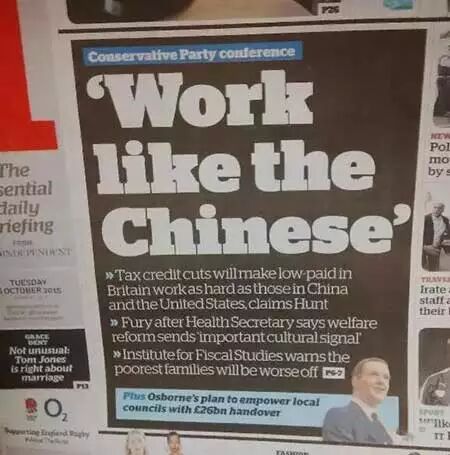 The British Conservative Party has encouraged citizens to “Work like the Chinese,” while reducing family tax credits. The Party said that low-income Britons must work hard “like the Chinese do,” in order not to be dependent on government welfare. This line of thinking, has of course, angered a number of British citizens.